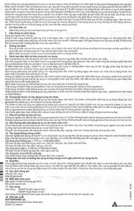 Công dụng:Thuốc Viartril-S có tác dụng làm giảm triệu chứng của thoái hóa khớp gối nhẹ và trung bình.
